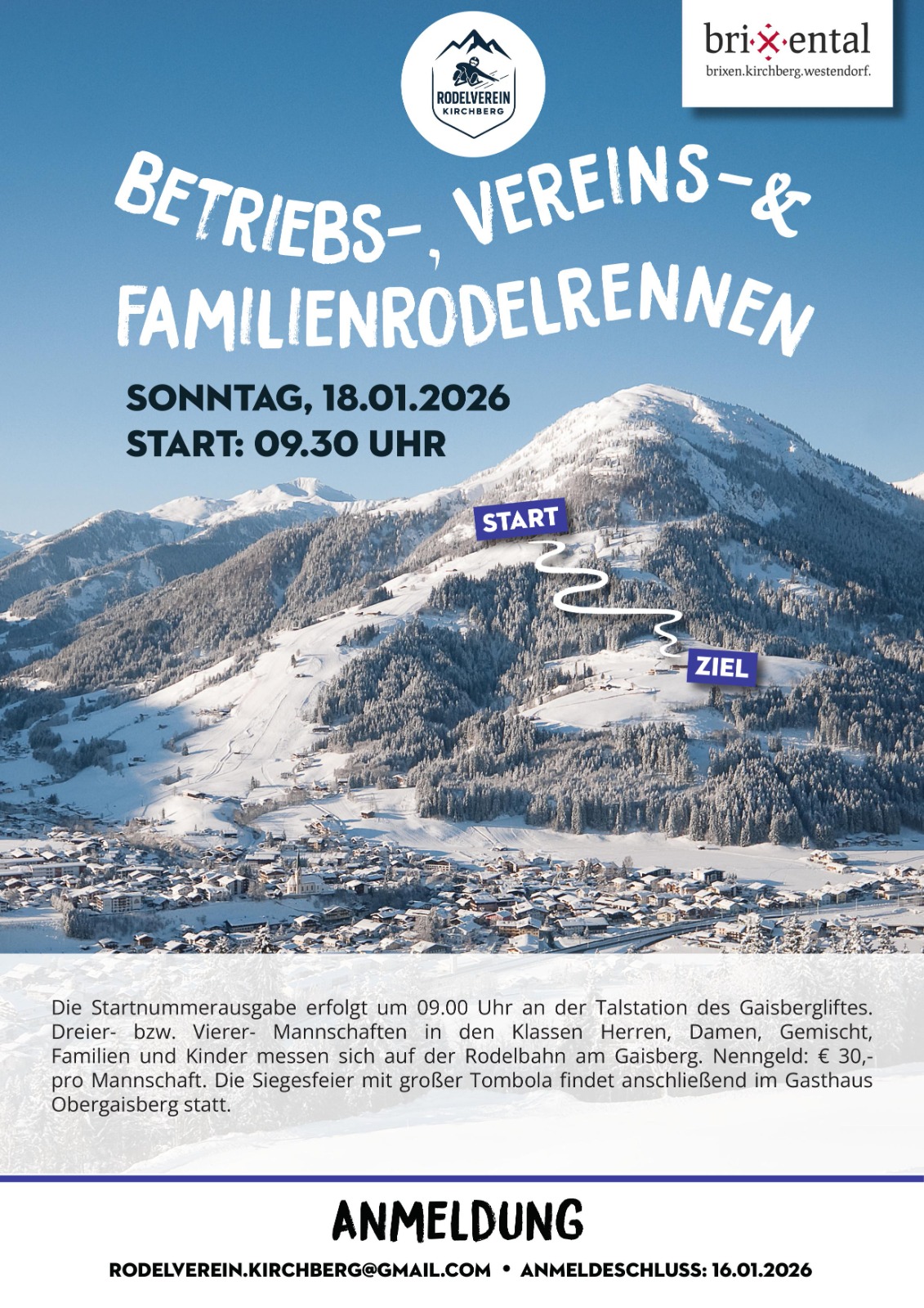 Am Sonntag den 18.01 findet am Gaisberg in Kirchberg in Tirol wieder ein spannendes Rodelrennen statt.